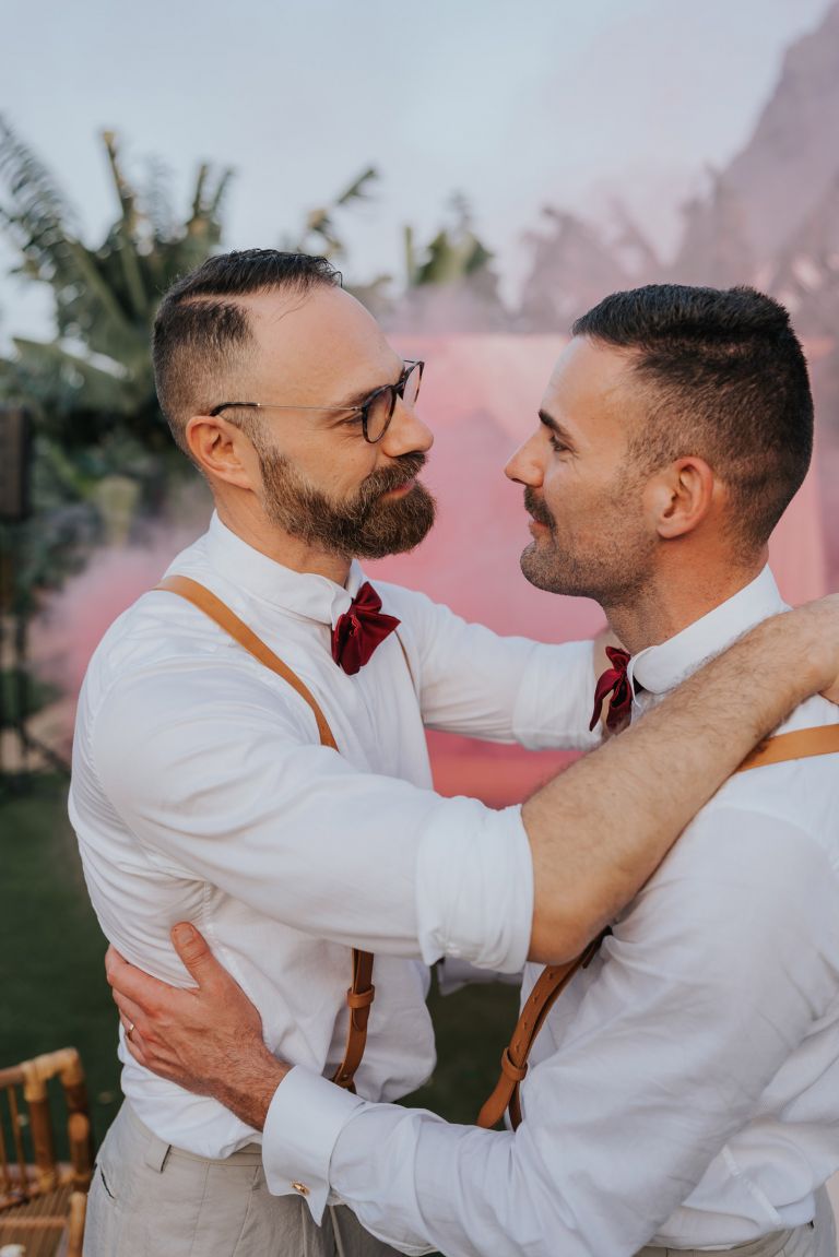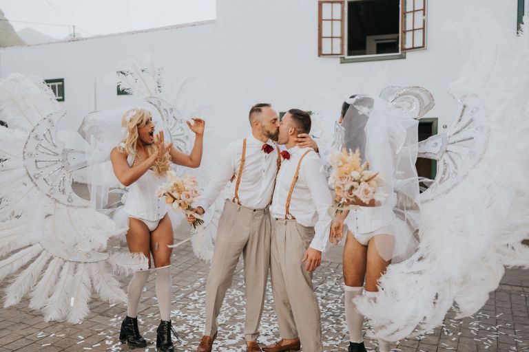 El amor no entiende de fronteras ni barreras, y la boda de Erik y Emilio fue la celebración perfecta de ese mensaje. Rodeados de amigos y familiares, estos dos hombres dieron un paso importante en sus vidas en la encantadora Finca Quiñones, situada en Los Silos, un lugar que reflejaba la serenidad y belleza de su historia juntos.