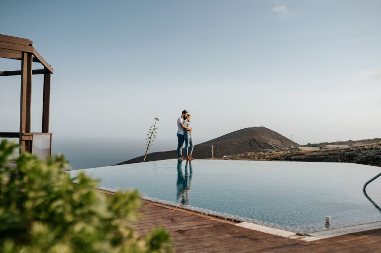 Irene y Dani viven en Barcelona, aunque ella es de Tenerife, y en uno de los viajes preparando la boda decidimos hacer unas fotos en un espacio realmente idílico, Las Casas del Camino Real, un caserío antiguo del sur de la isla, totalmente restaurado y convertido en alojamiento rural.