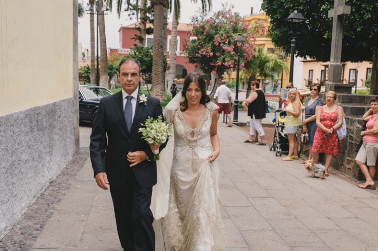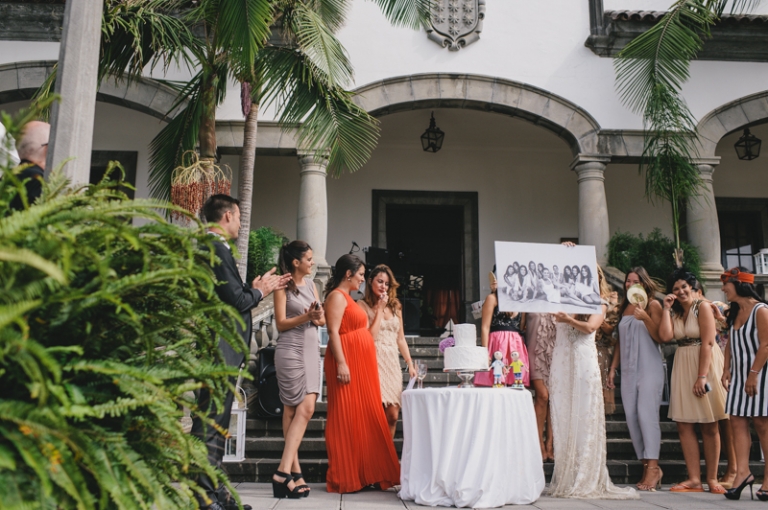 Se conocieron en la facultad de Derecho junto al tablón de notas (cuantas historias han salido de esos tablones, verdad? ). El de Las Palmas, ella de La Laguna (buena mezcla), y se vinieron a vivir a Santa Cruz. Después de cinco años de noviazgo decidieron casarse en Finca Zamora, de la que ya he hablado maravillas en anteriores posts. Esta vez, tanto Jesús Rodrígues como Lucas Gamonal se lucieron ya que el banquete consistió en un cocktail que duró toda la tarde y parte de la noche. Los invitados entusiasmados, muchas ganas de fiesta y mucho cariño que hizo traer invitados desde bastante lejos.